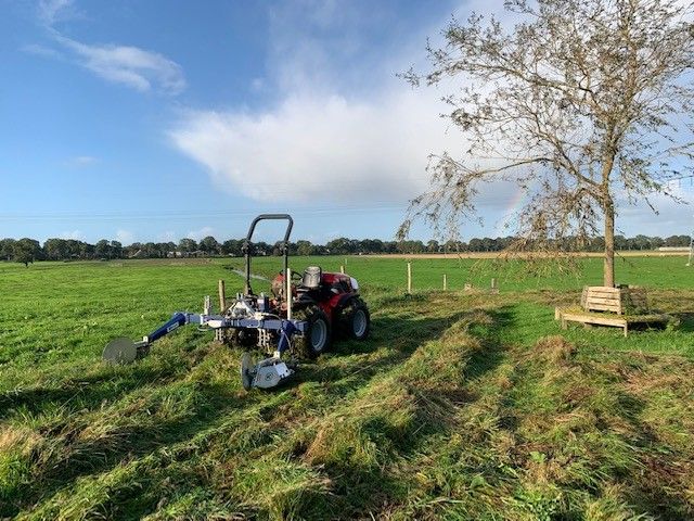 Na het maaien is het mogelijk om het gemaaide oppervlak bij elkaar te harken en vervolgens af te ruimen door middel van een mini opraapwagen. Hierdoor kunnen ook grotere oppervlakten gemaaid en afgeruimd worden.