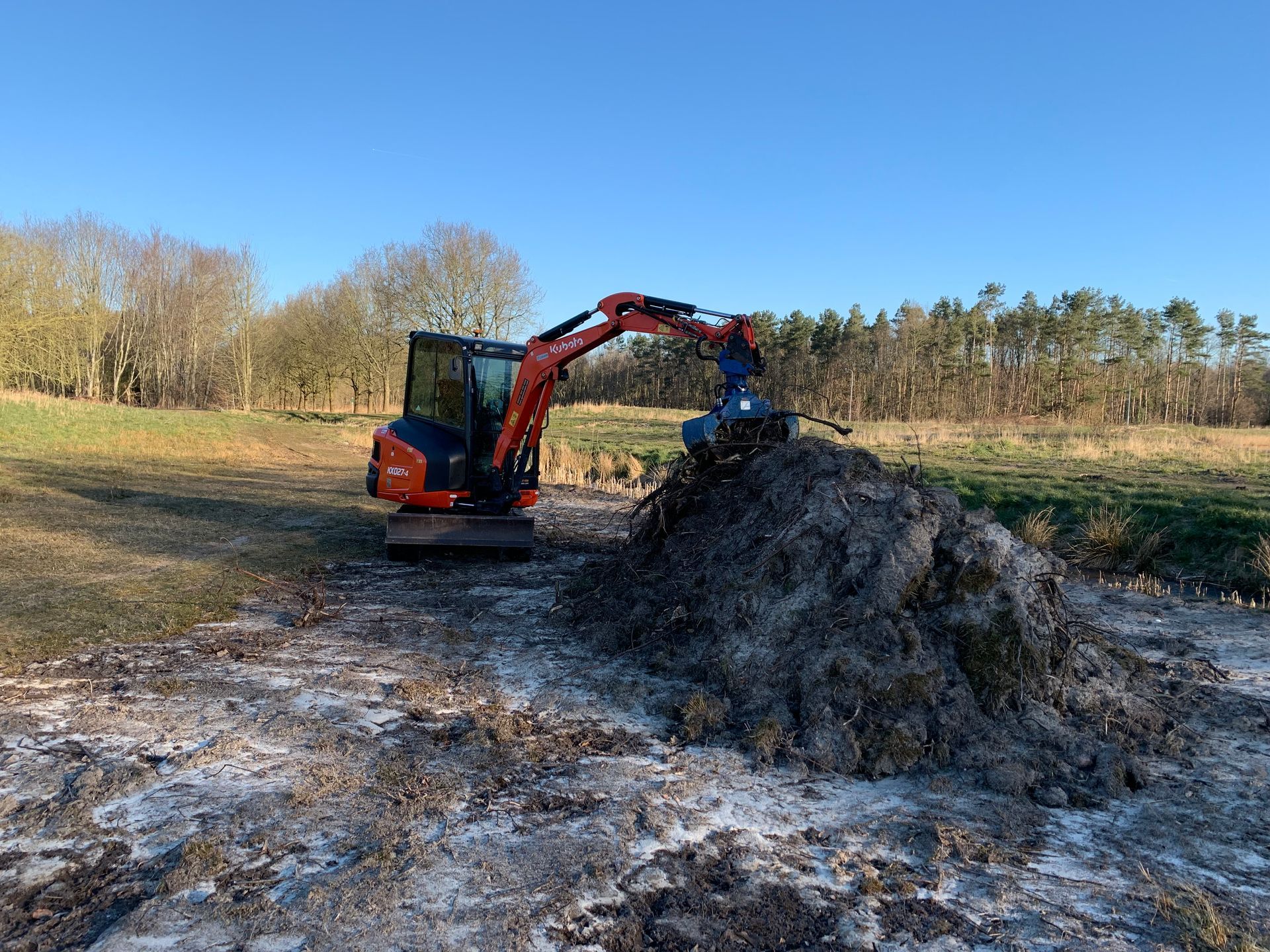 Ook voor grondverzet werkzaamheden bent u bij Venema Agri en Groen aan het juiste adres. Of het nu gaat om het leeg halen van een tuin, uitgraven van grond en gereed maken voor bestrating, het leggen van leidingen en riolering, het aanleggen van een vijver of het schoon maken van sloten. Voor iedere klus is er de juiste formaat kraan.